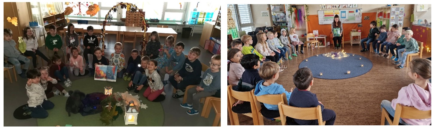 Anlässlich der Schweizer Erzählnacht stand unser diesjähriger Erzählmorgen ganz im Zeichen des Themas «Zeitreise». In allen Klassen wurde vorgelesen, erzählt und gemeinsam in vergangene sowie zukünftige Welten eingetaucht.